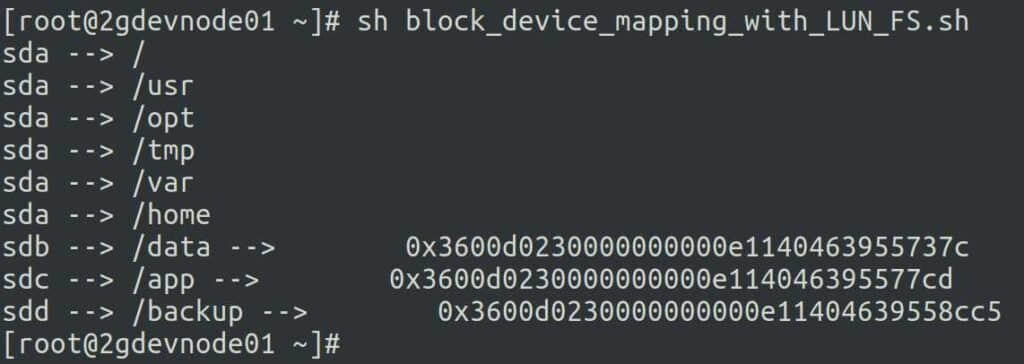 将物理磁盘映射到 Linux 中的存储 LUN 和文件系统的 Shell 脚本