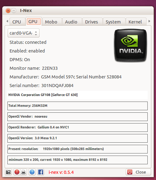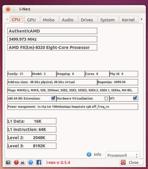 从本质上说,I-Nex显示一个非常详细的系统组件信息,包括驱动,内核,RAM,网络,USB,CPU,GPU,主板,音频,允许用户很容易的掌握自己的计算机和操作系统信息。