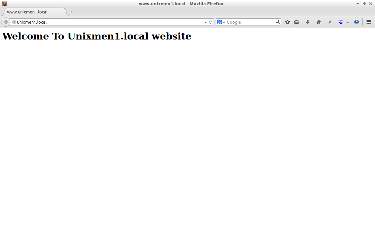 打开你的浏览器并访问**http://unixmen1.local** 或 http://unixmen2.local。你将会看到我们之前创建的示例页。
