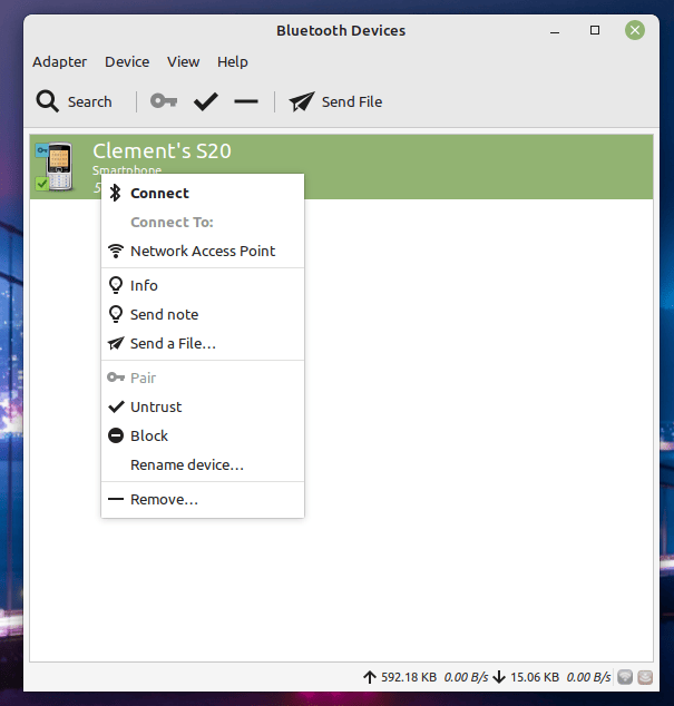 之所以这样做,主要是因为 Blueman 提供了更多的功能和连接选项,以及对多种桌面环境的更好支持。此外,Blueman 的用户界面与 Linux Mint 完美地融合在一起。